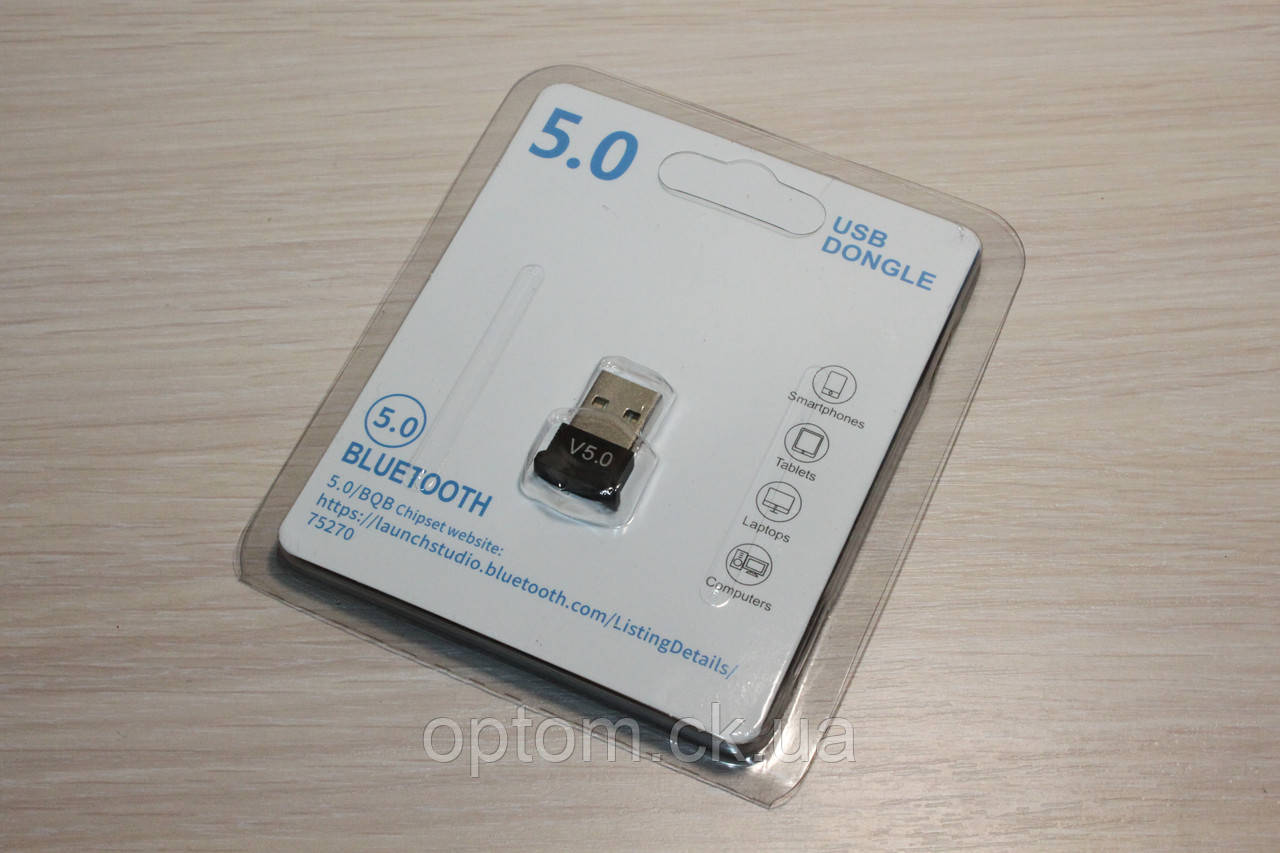 Блутуз версі 5.0 USB для комп'ютера, для під'єднання телефона до комп'ютера, можна також використовувати телефон як модем через блутуз, також під'єднувати стереонавушники.